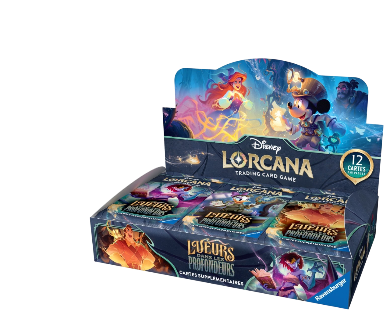 Découvrez la magie du Chapitre 10 de Disney Lorcana : Lueurs dans les Profondeurs avec cette display scellée de 24 boosters français. Chaque booster contient 12 cartes entièrement inédites, sans réimpressions, garantissant une expérience de jeu et de collection 100 % nouvelle.