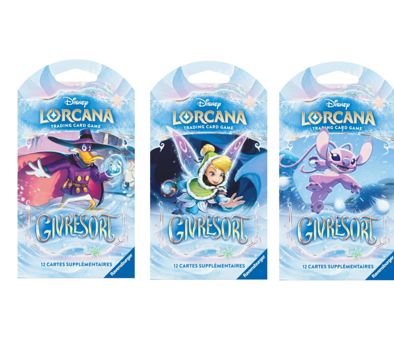 Un booster Givresort contient 12 cartes Disney Lorcana, dont une brillante et jusqu’à des cartes rares, très rares ou légendaires. Idéal pour renforcer votre deck, compléter votre collection ou tenter un tirage chanceux. Le chapitre 11 offre de nouveaux personnages, capacités et stratégies.