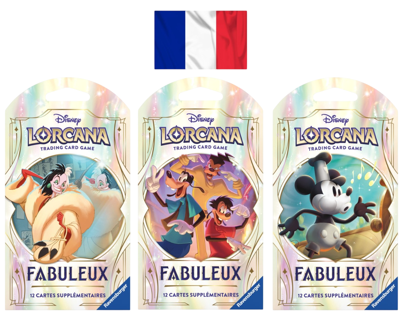 Plongez dans l’univers magique de Disney Lorcana – Chapitre 9 : Fabuleux avec ces boosters indispensables pour les collectionneurs et joueurs. Contrairement aux decks de démarrage, chaque booster vous permet de personnaliser vos stratégies grâce à une sélection de cartes totalement aléatoires.