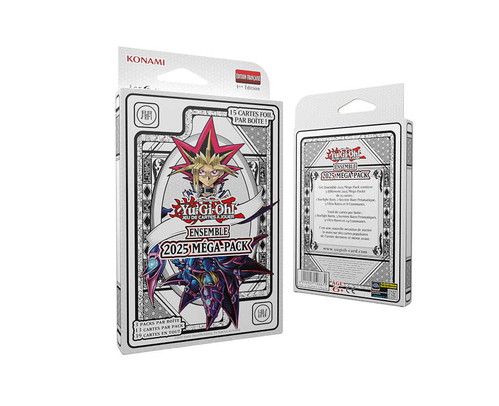 Découvrez le Tripack Yu-Gi-Oh! Méga-Pack 2025 : un bundle exclusif de 3 boosters remplis de cartes rares et brillantes. Chaque paquet contient 1 Starlight Rare, 1 Prismatic Secret Rare, 3 Ultra Rares et 8 Communes. L’édition parfaite pour profiter de la magie des Méga-Packs 2025 sans la Tin Box, à un prix avantageux !