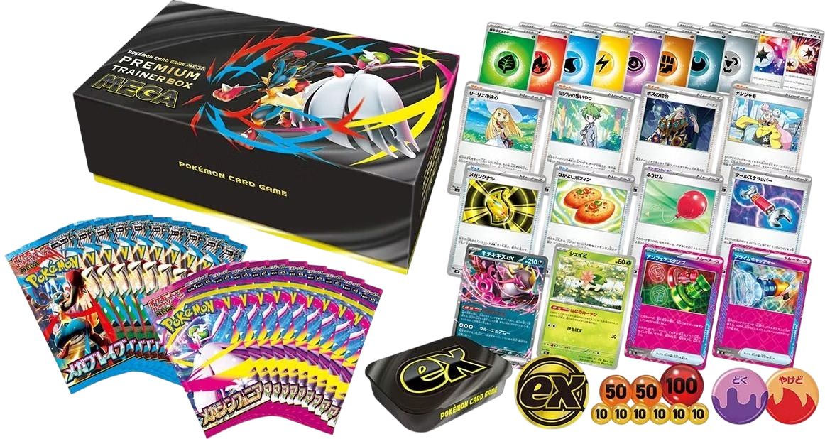 Lancée pour marquer le début du bloc MEGA, cette Premium Trainer Box est un produit exclusif et limité, pensé à la fois pour les collectionneurs et les joueurs compétitifs.
