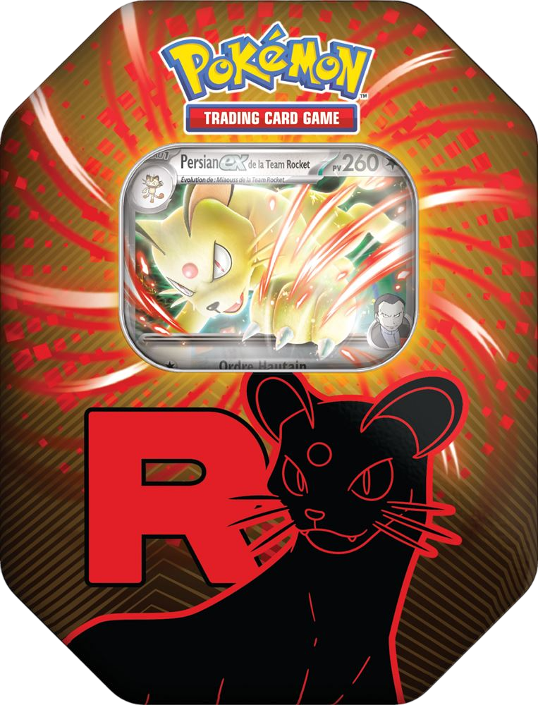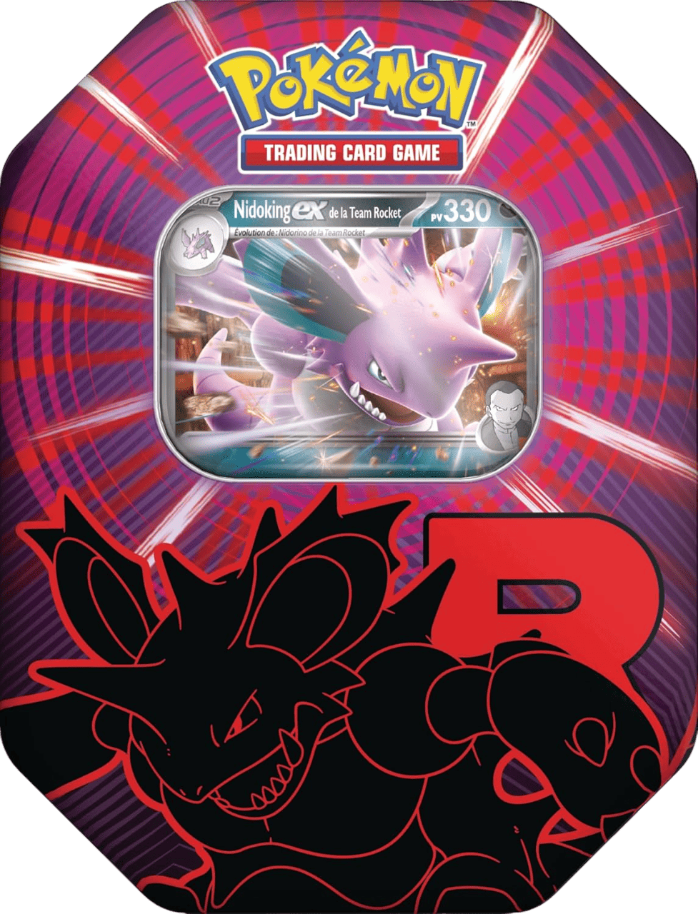 Choisis parmi trois cartes promo brillantes exclusives : Mewtwo-ex, Nidoking-ex ou Persian-ex, toutes issues de la Team Rocket.