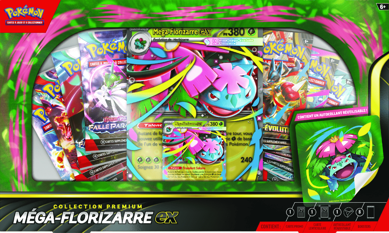 Plongez dans l’univers du JCC Pokémon avec le Coffret Collection Premium Méga-Florizarre ex, un ensemble exceptionnel dédié à l’un des Pokémon Méga-Évolués les plus emblématiques. Parfait pour les collectionneurs comme pour les joueurs, ce coffret réunit cartes exclusives, contenu généreux et design premium.