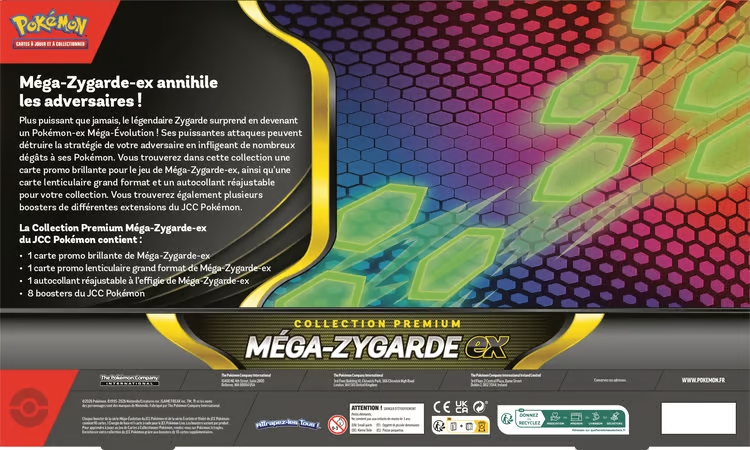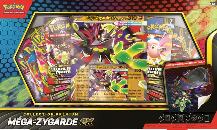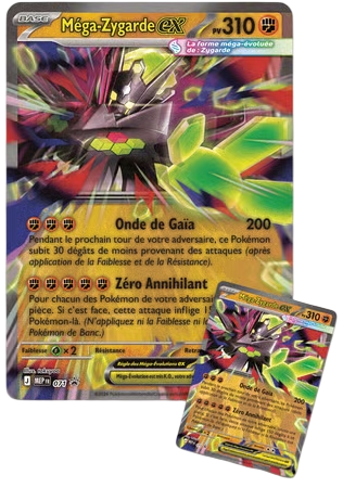 Ce coffret premium inclut une carte promotionnelle Méga-Zygarde ex (MEP 071) ainsi qu’une version grand format lenticulaire.