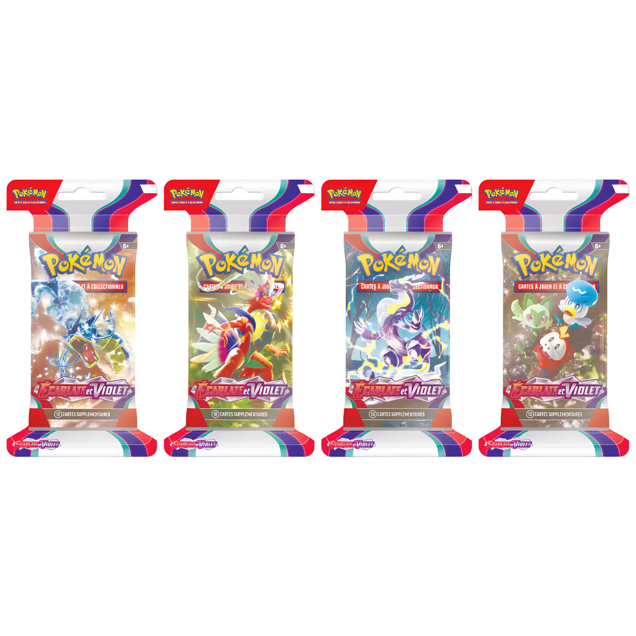 Un nouveau départ vous attend dans la région de Paldea. Faites vos premiers pas dans l’univers du JCC Pokémon version Écarlate et Violet avec ce booster riche en découvertes. Retrouvez les Pokémon emblématiques de la 9e génération : Poussacha, Chochodile et Coiffeton, ainsi que les légendaires Koraidon et Miraidon, prêts à déployer leur puissance en tant que Pokémon-ex. Arcanin et Léviator se révèlent dans des formes étonnantes aux effets visuels marquants, tandis que de nombreuses cartes aux illustrations rares viennent enrichir votre collection.