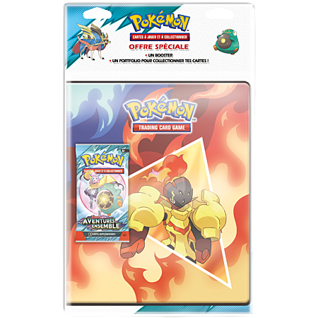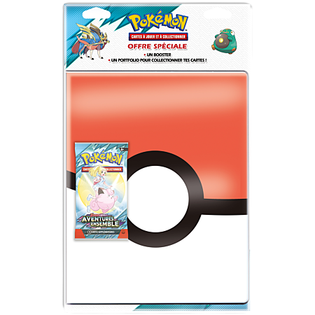 Pack Portfolio Pokémon EV09 Aventures Ensemble : un classeur de 180 cartes + 1 booster de 10 cartes de l’extension Écarlate & Violet.