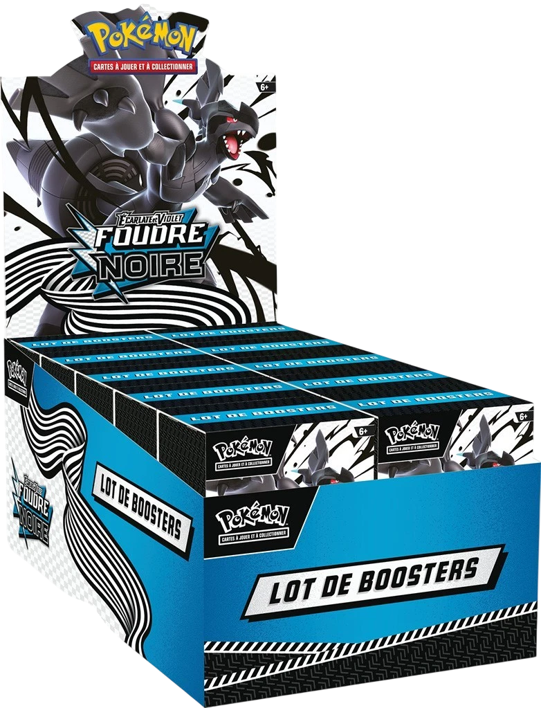 Pack contenant 6 boosters de l’extension Foudre Noire centrée sur Zekrom et les Pokémon Électrik. Chaque booster propose 10 cartes rares, brillantes ou stratégiques. Une option idéale pour enrichir sa collection ou améliorer son deck.